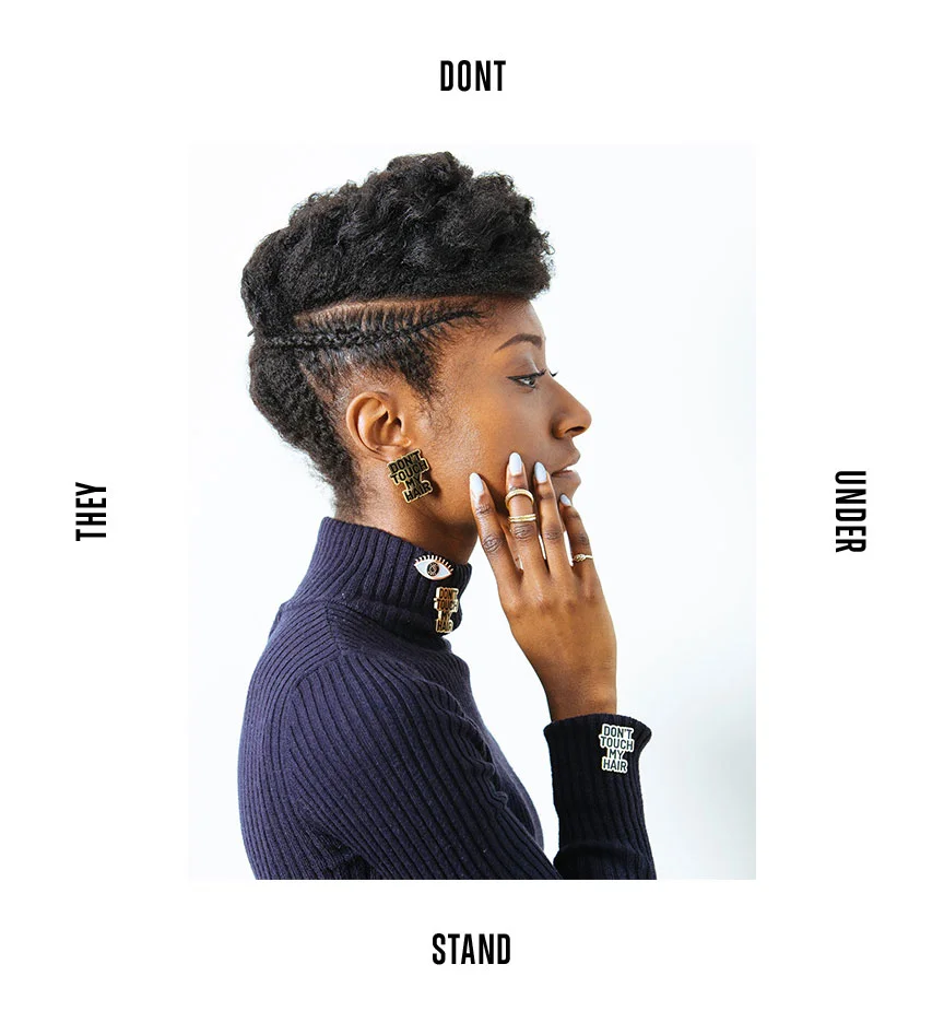 Stylist Londyn Douglas created a shoot inspired by Pam Grier, Black 70's hair ads, and of course Solange using the So Laci Like "Stay Woke + "Don't Touch My Hair pins". From there I created a layout to compliment the photos for promotional and content use.